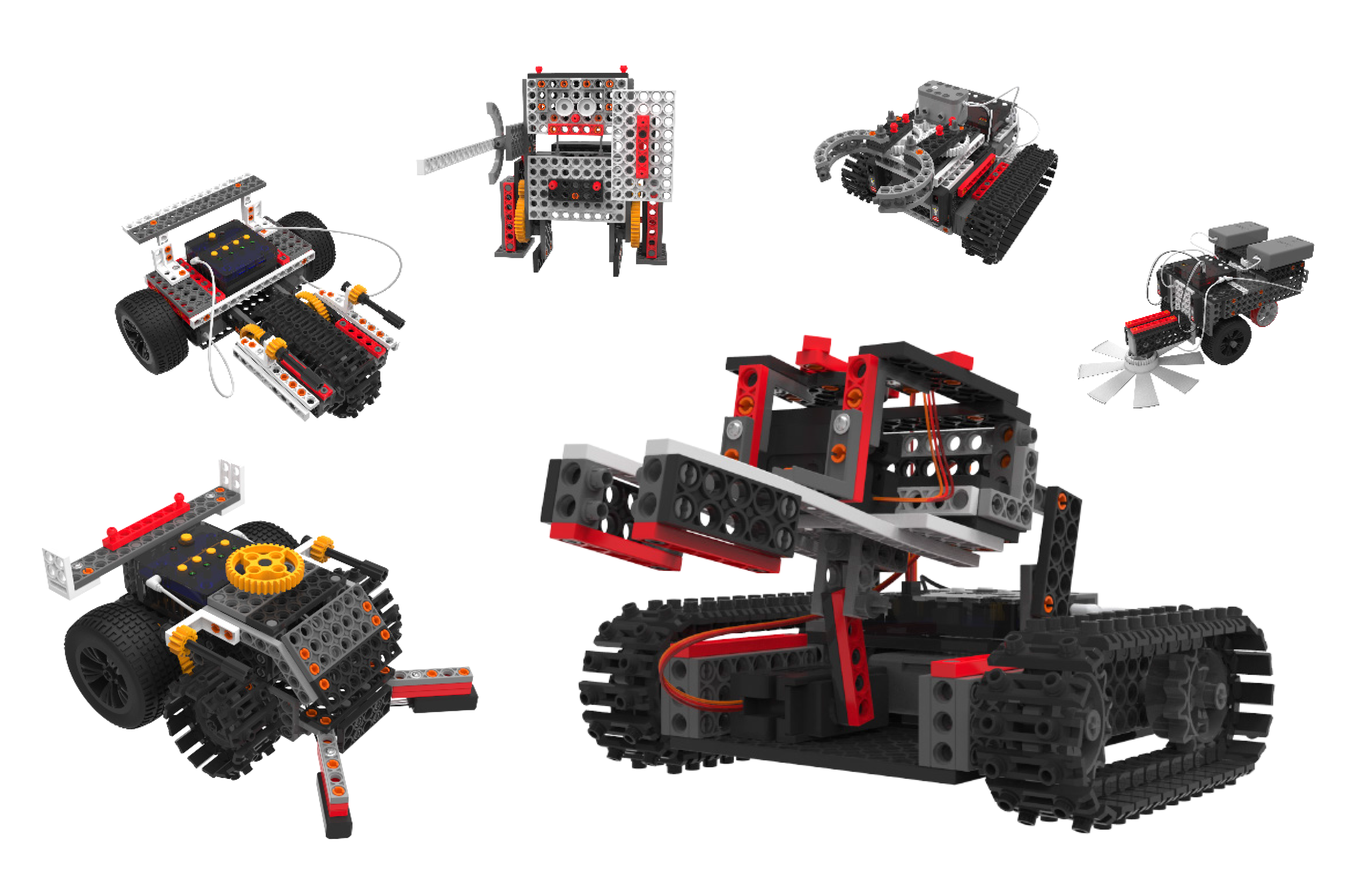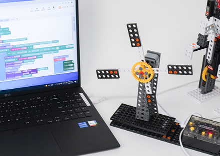 각종 블록과, 바퀴, 기어, 센서, 모터등을 활용하여 모형 제작