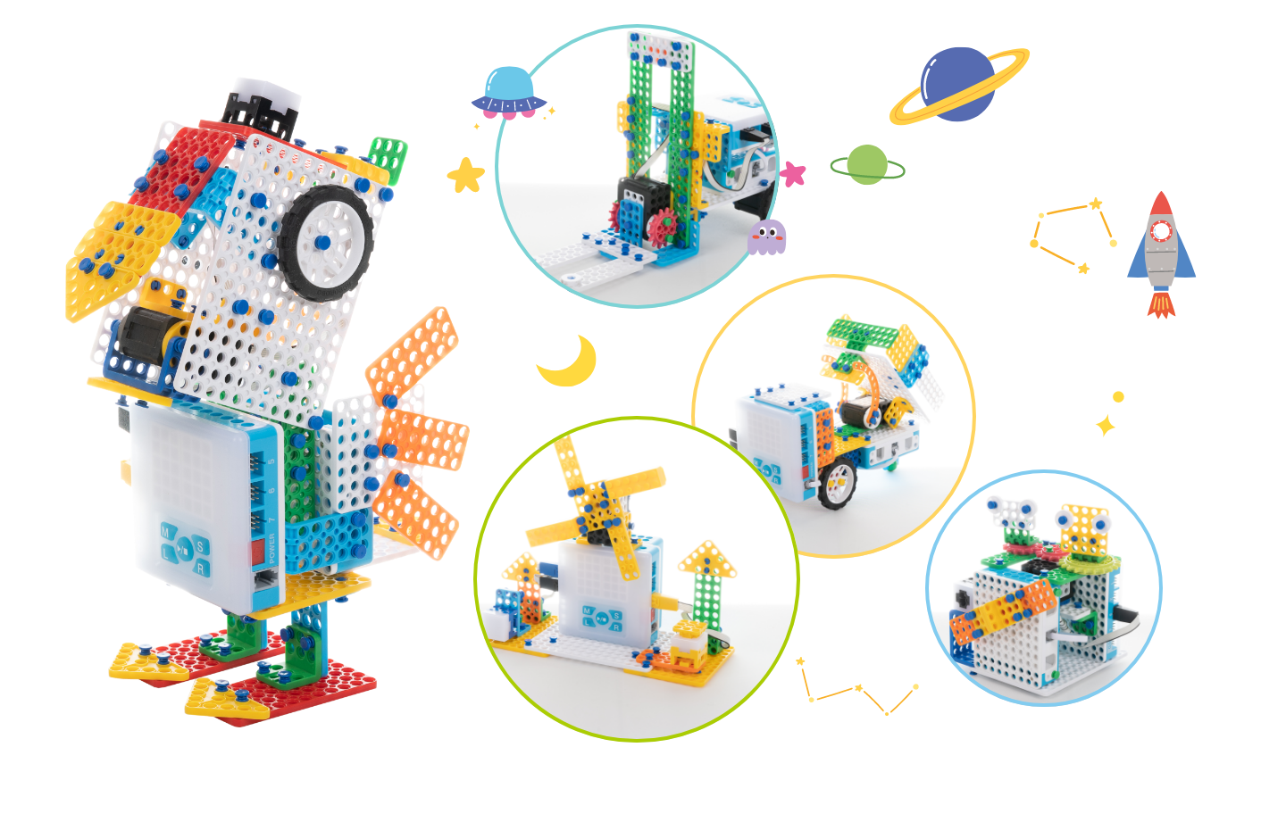 - 프레임과 모터, 센서등을 활용하여 각종 로봇의 모형을 만들고 제어해 보기